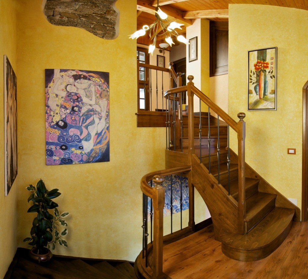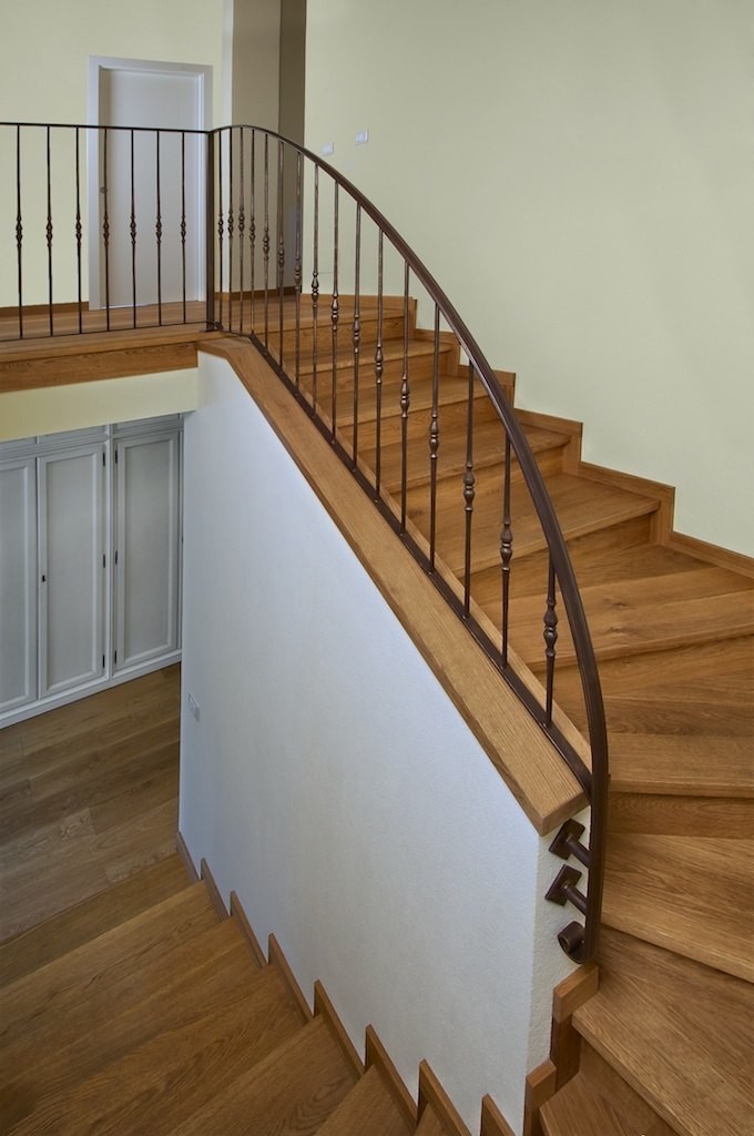 Scala in rovere di Slavonia con ringhiera in ferro battuto